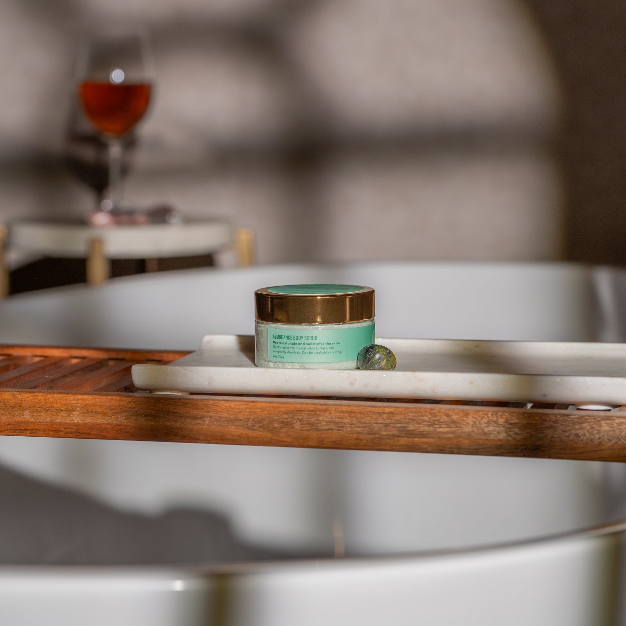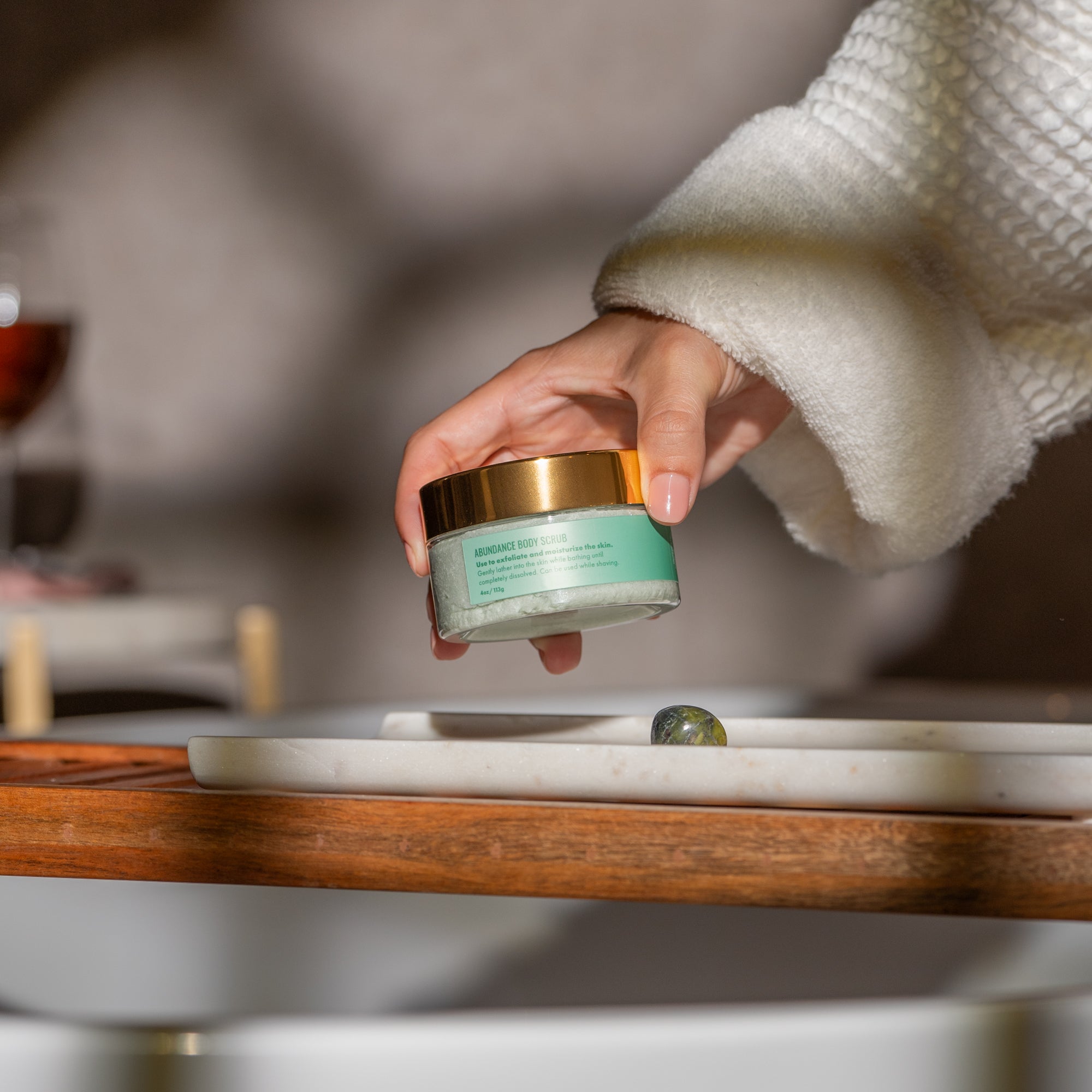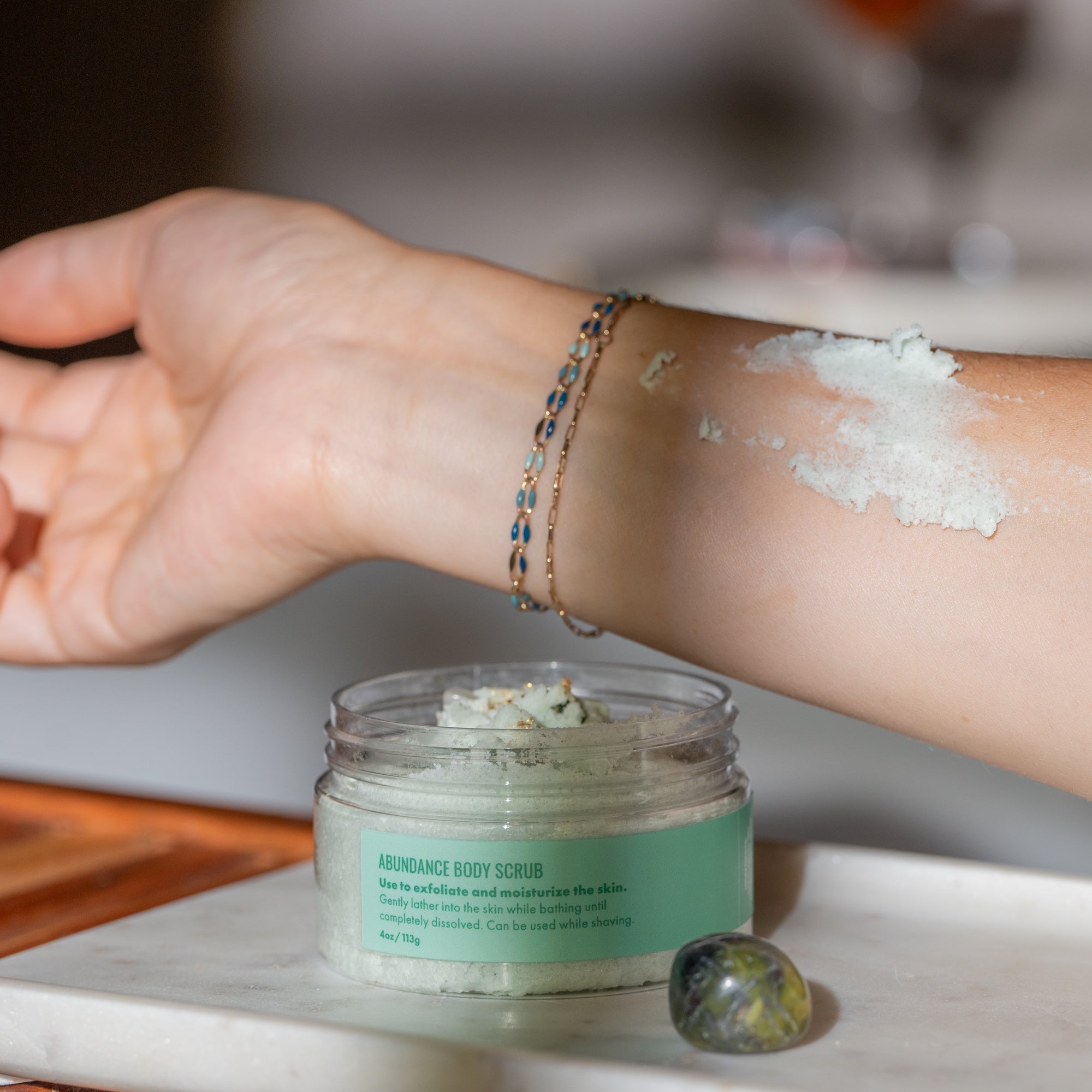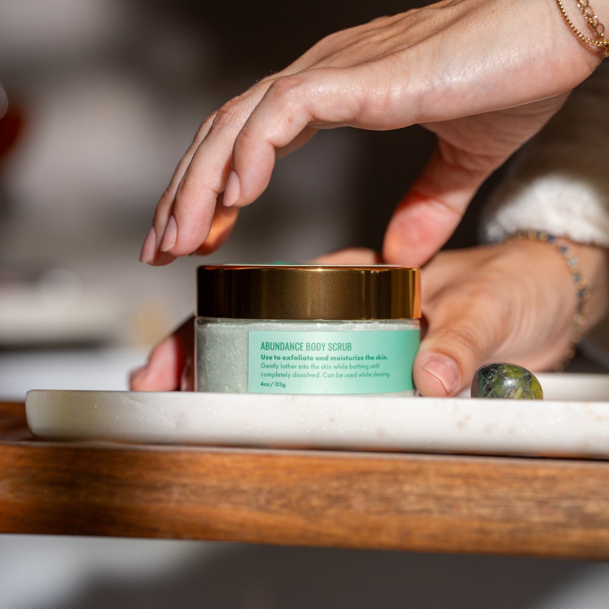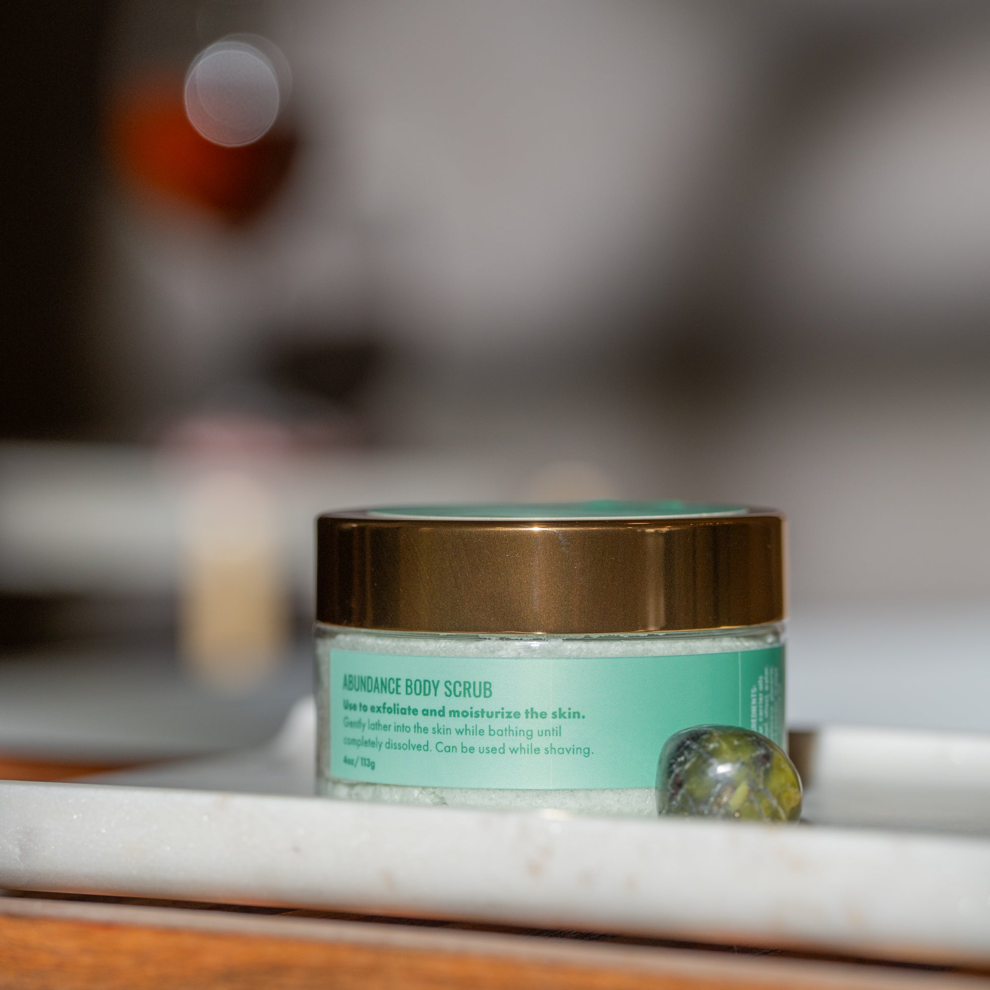 Enrich your skincare routine with our Abundance Body Scrub, crafted to exfoliate and nourish your skin while uplifting your mood.