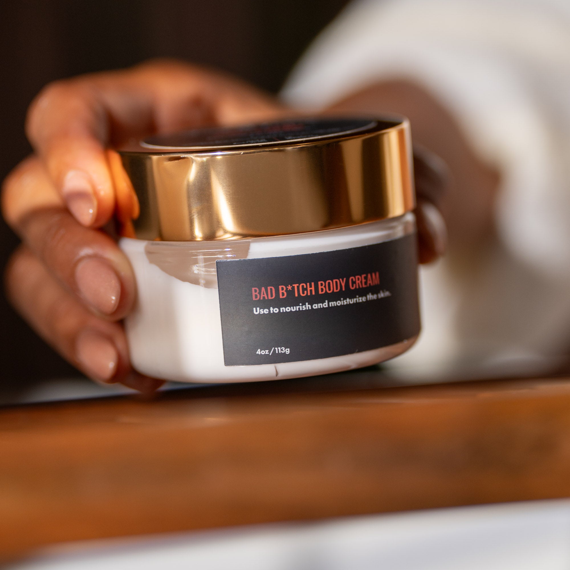 Embrace the ultimate in skin luxury with Bad B*tch Body Cream. Designed to nourish and moisturize, this indulgent cream offers a sumptuous blend of ingredients that leave your skin feeling irresistibly soft and beautifully scented.