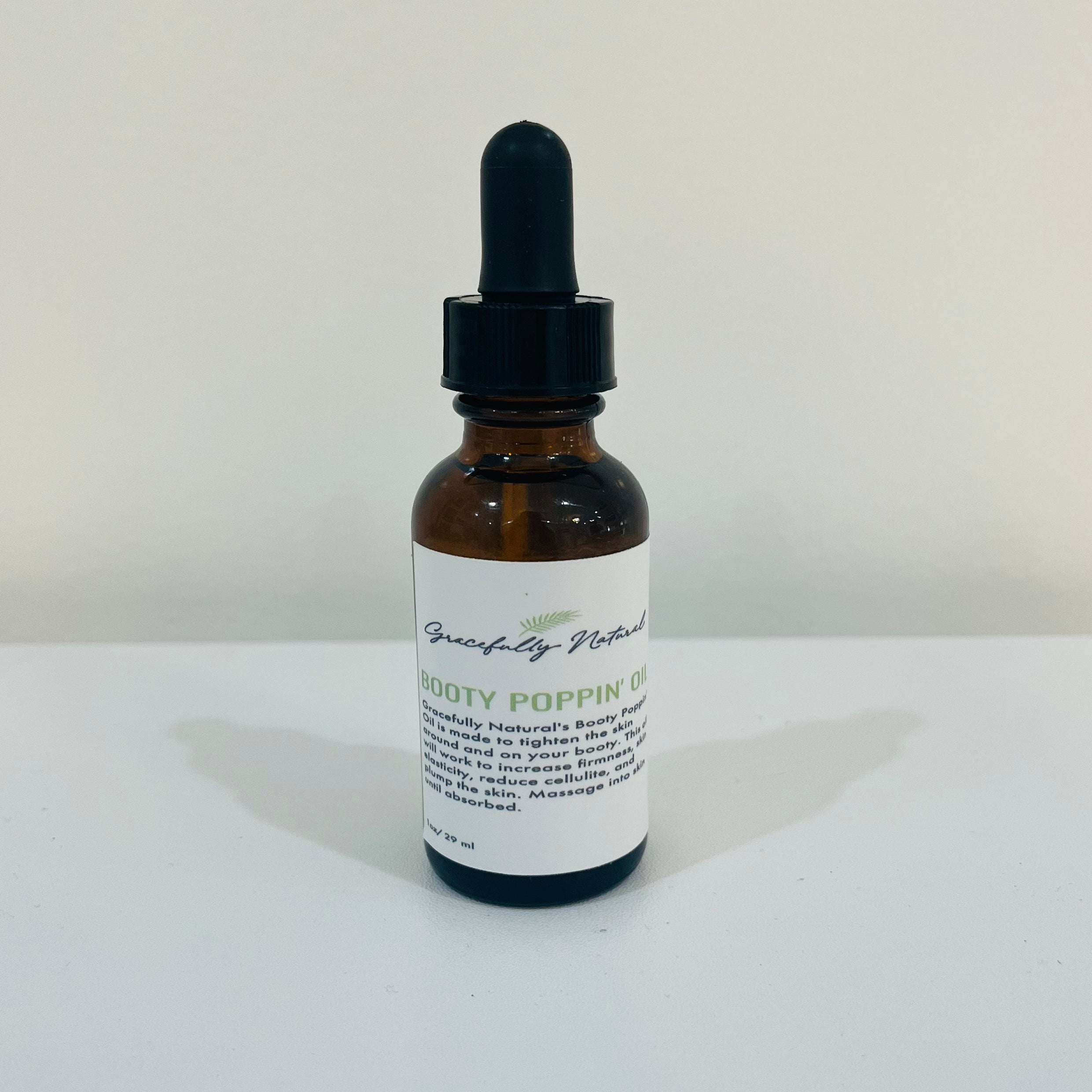 Gracefully Natural's Booty Poppin' Oil is made to tighten the skin around and on your booty. This oil will work to increase firmness, skin elasticity, reduce cellulite, and plump the skin. Massage into skin until absorbed.