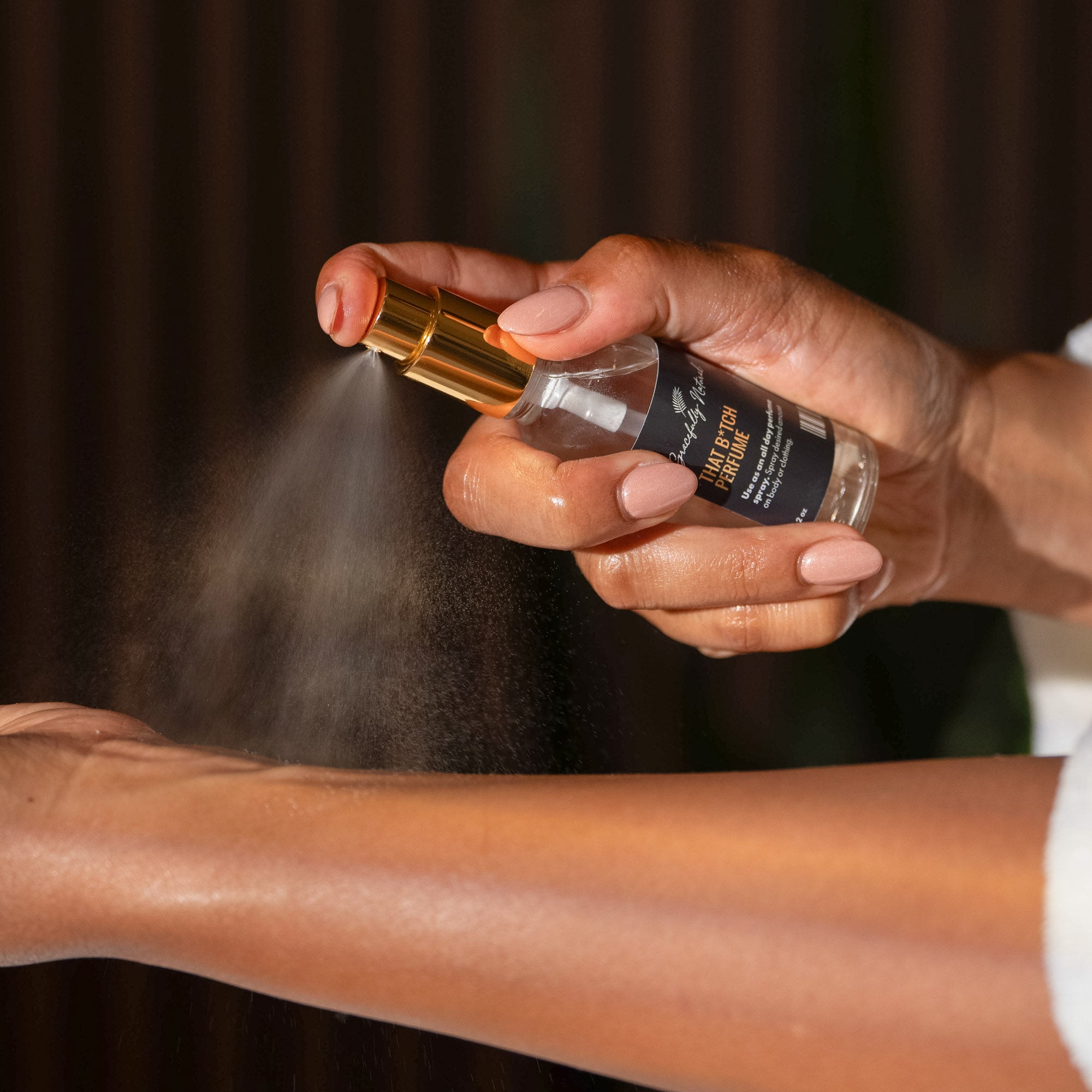 Spray on your body or clothing, and let the world remember you. Because a little bit of That B*tch goes a long way.