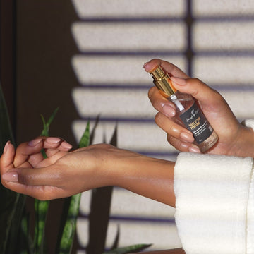 Crafted with organic alcohol and enriched with bergamot, peony, and amber, this spray delivers a sophisticated aroma that’s both bold and alluring. It’s not just a scent; it’s your signature.