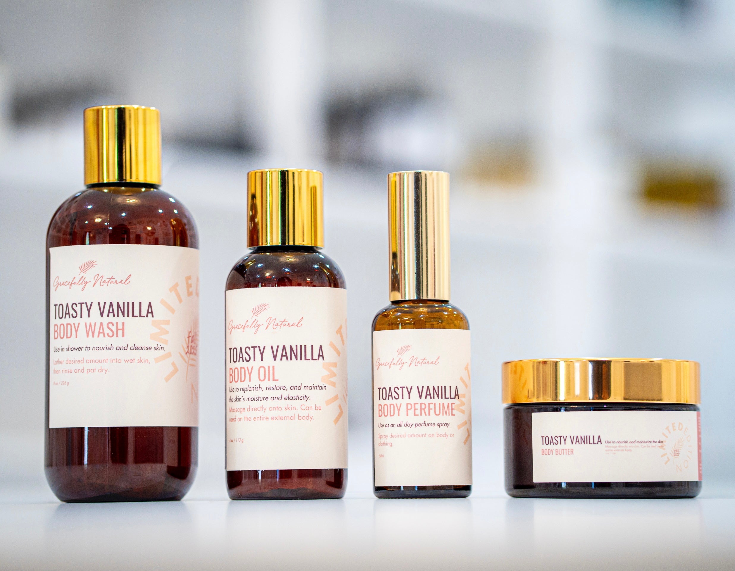 Indulge in the warm, comforting embrace of our Toasty Vanilla Collection. Each product is carefully crafted to nourish your skin and envelop you in the soothing scent of vanilla.