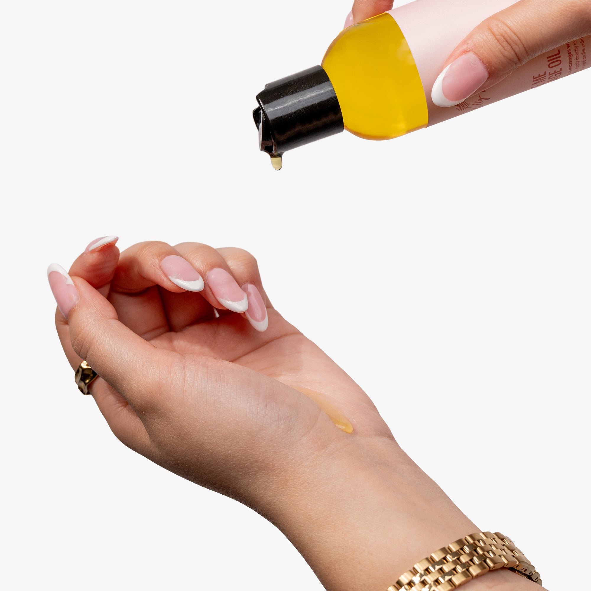 Jojoba oil, sweet almond oil, argan oil, arnica, lemon, vanilla, sweet orange, grapefruit, patchouli, jasmine, ylang ylang, and orange blossom essential oils.