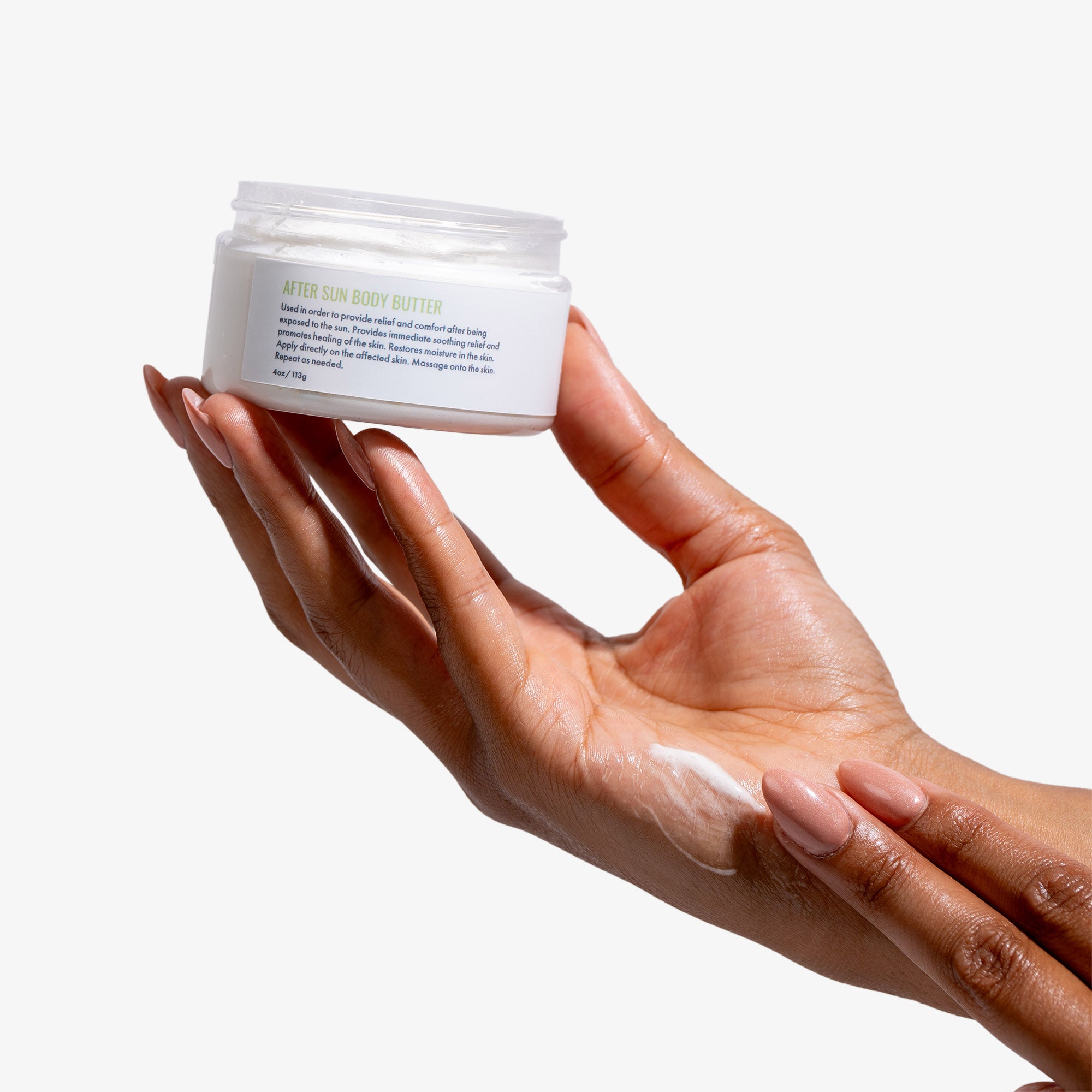 The After Sun Butter is used in order to provide relief and comfort after being exposed to the sun. It provides immediate soothing relief and promotes healing of the skin while restoring moisture into it. Use this on dry or sunburned skin to promote healing and lock in your tan.