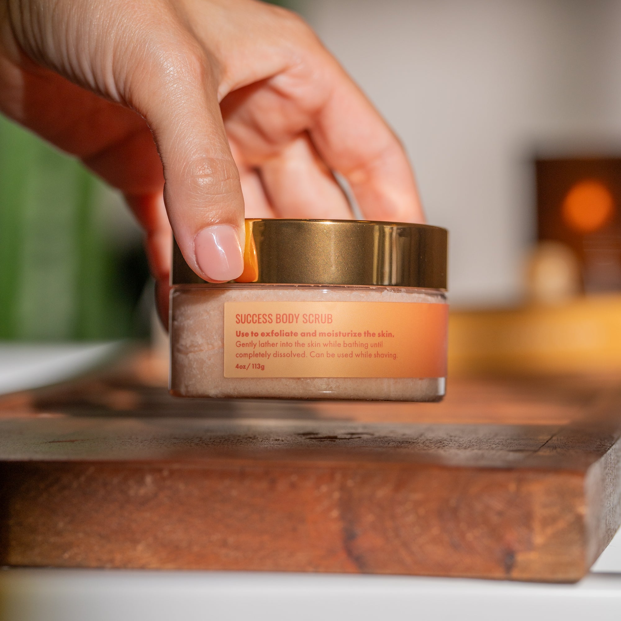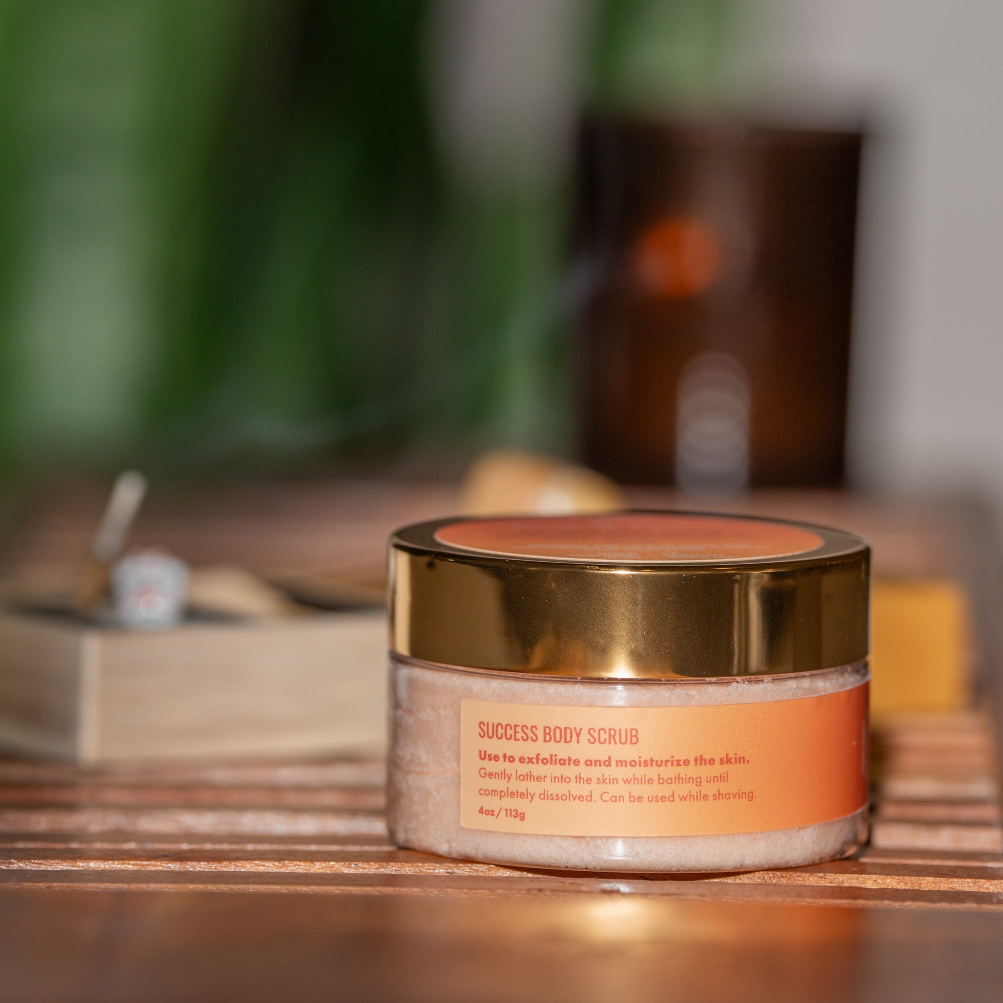 Elevate your skincare routine with our Success Body Scrub, designed to rejuvenate your skin and invigorate your senses.