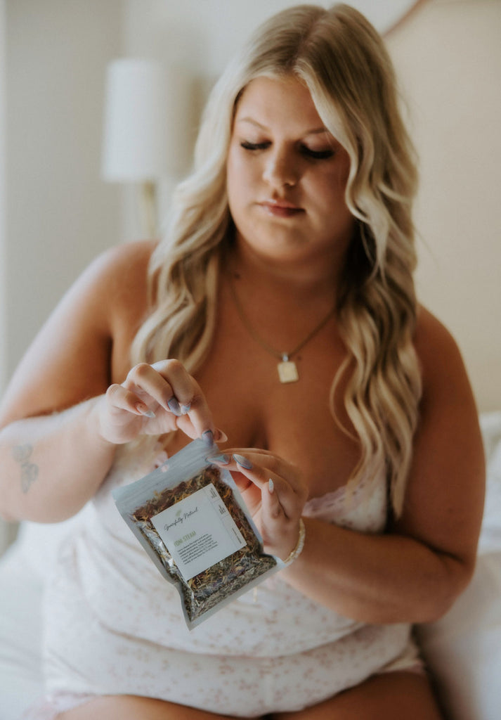 Vaginal steaming is an age-old, natural remedy to cleanse the vagina and uterus, regulate menstruation, and ease menstrual cramps and bloating. Steaming with the Yoni Steam is referred to as a session, and even after one session, results are noticeable. A Yoni Steam session gently and effectively cleanses the uterus of any stagnation or build-up of old blood and restores the wholeness of the entire female reproductive tract. The healing Yoni Steam allows oils from the medicinal plants and other herbs to be released that will help aid the body in clearing old uterine membranes and restoring homeostasis.